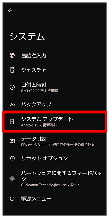 システムアップデート画面が表示されます。