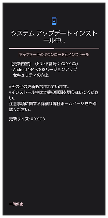 - システムアップデート中もほかの機能を使用できます。ただし、システムアップデートの通知後10日間は、システムアップデート中にほかの機能を使用していると、アップデートのインストールが一時的に停止されます。をタップすると、インストールが再開され、ほかの機能も使用可能になります。