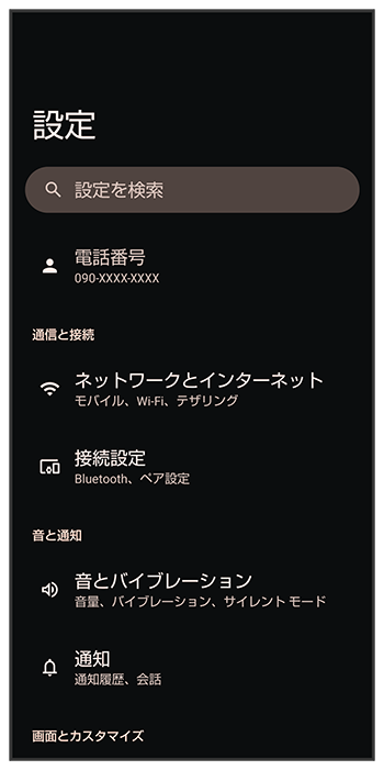 端末設定画面の項目が、内容や機能ごとに分類して表示されるようになります。