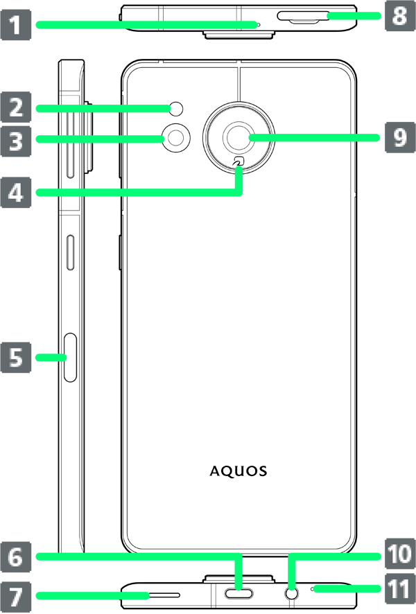| カードトレイ | SDカードやSIMカードを取り付け/取り外しできます。 |