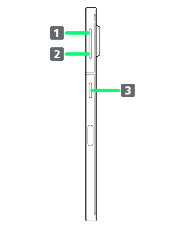| 電源キー | 画面を消灯/点灯します。長押しすると、電源を入れたり、Google Pay™を起動できます。1 |