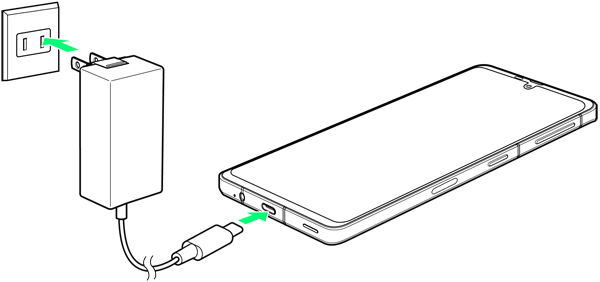 ACアダプタは、防水対応していません。本機または充電器が濡れている状態では、USB Type-Cプラグを絶対に接続しないでください。