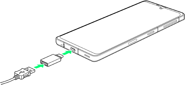 用意したケーブルを、これまでお使いのスマートフォンに接続する