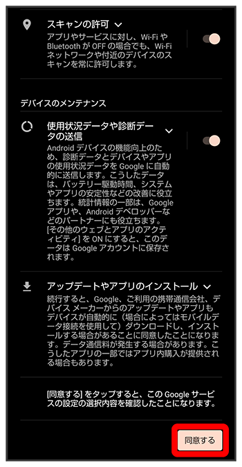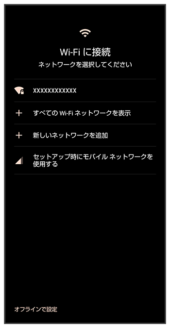 - モバイルネットワークを使用して初期設定を行うときは、を選択します。以降は、画面に従って操作してください。