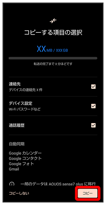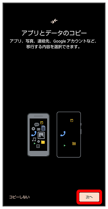 - ほかの端末などからデータをコピーしないときは、をタップします。
