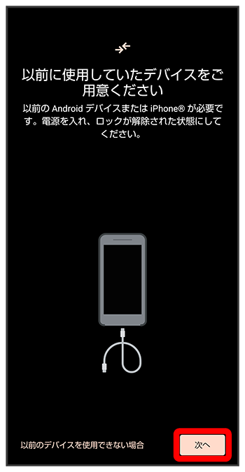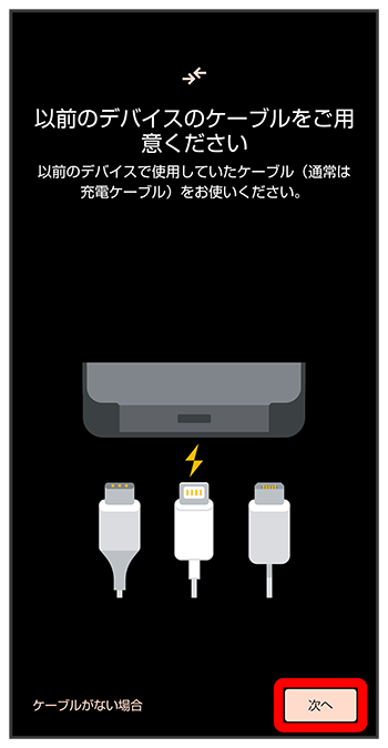 - これまでお使いのスマートフォンのケーブルがない場合は、をタップして、画面に従って操作してください。