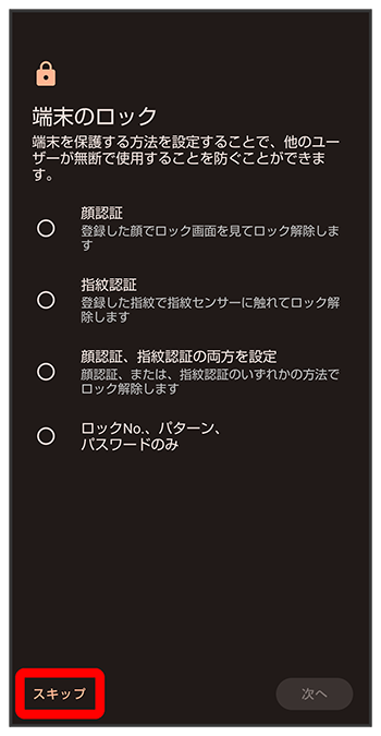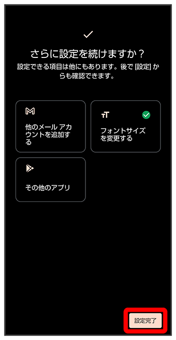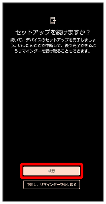 - 初期設定を中断し、あとでリマインダーを受け取るときは、をタップします。