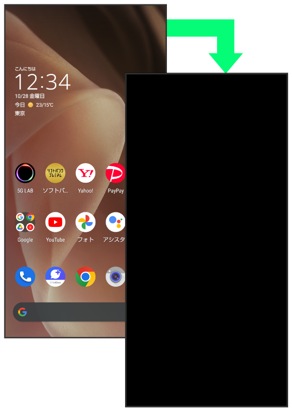 - 画面点灯時に電源キーを押すと、手動で画面ロック状態にすることができます。