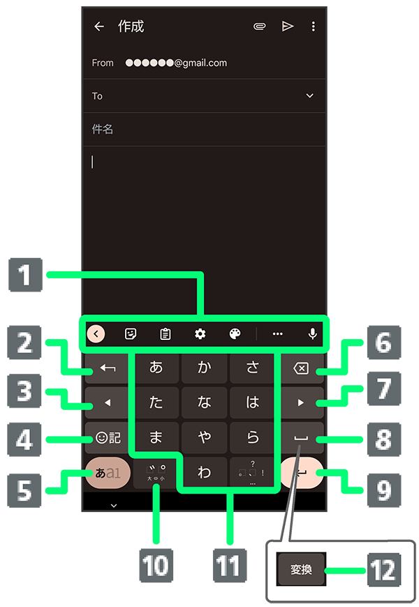 - 表示するアイテムを変更することもできます。詳しくは、「ツールバーについて(Gboard)」を参照してください。