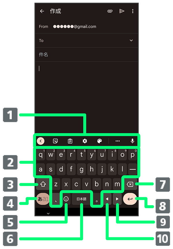 - 表示するアイテムを変更することもできます。詳しくは、「ツールバーについて(Gboard)」を参照してください。