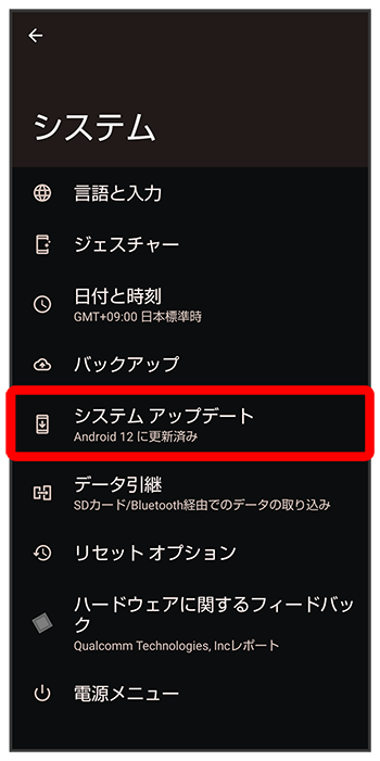 システムアップデートが必要なときは、通知が表示されます。通知をタップし、画面に従って操作してください。通知が表示されない場合などは、次の手順で必要かどうかを確認してアップデートできます。