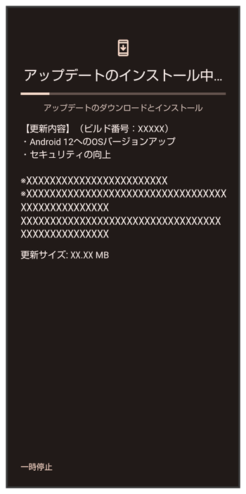 - システムアップデート中も他の機能を使用できます。ただし、システムアップデートの通知後10日間は、システムアップデート中に他の機能を使用していると、アップデートのインストールが一時的に停止されます。をタップすると、インストールが再開され、他の機能も使用可能になります。