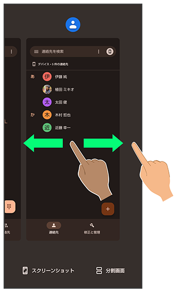 アプリの履歴を左右にドラッグして、操作したいアプリの履歴を選択