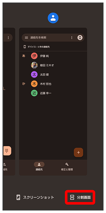 - アプリの使用履歴画面でアプリの履歴のアイコンをタップと操作しても画面を分割できます。