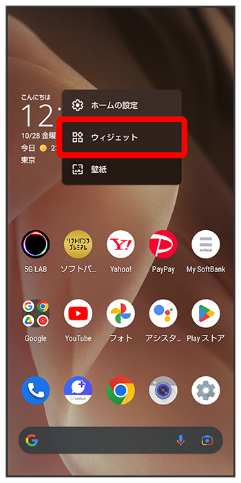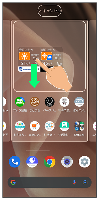 ホーム画面でウィジェットをロングタッチ「削除」までドラッグ