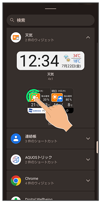 検索バーの下に、おすすめのウィジェットが表示されます。