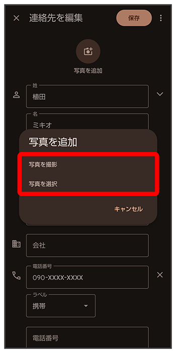 - またはをタップすると、カメラが起動します。撮って保存したあと、手順