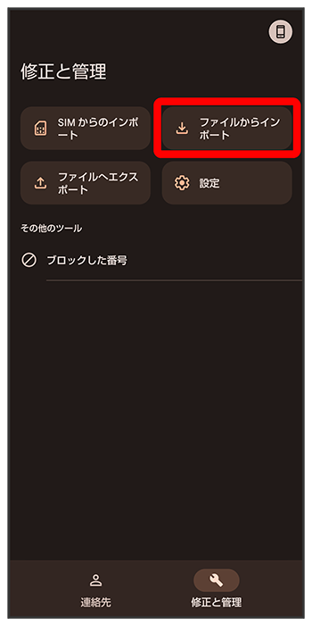 本機やほかの携帯電話でSDカードに保存(バックアップ)した電話帳データを読み込み(インポート)できます。