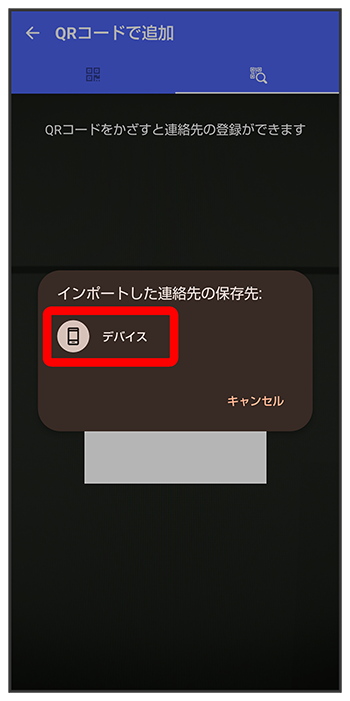 相手機器でQRコードを表示QRコードを画面中央に表示