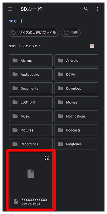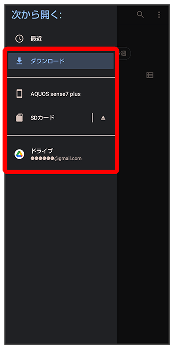- SDカードはSDカードを挿入している場合、Google ドライブはGoogle アカウントを設定している場合に表示されます。
