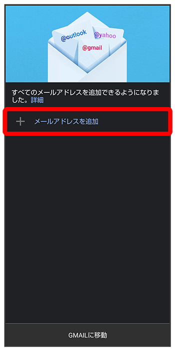 (Gmail)を起動すると、アカウント設定画面が表示され、設定操作を行うことができます。