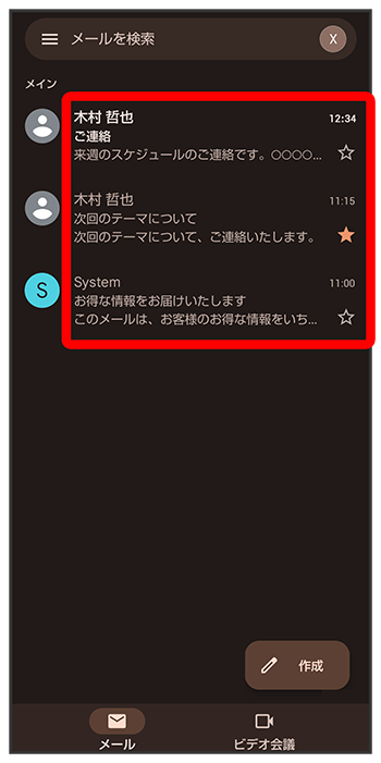 - メール一覧画面で、削除するメールのアイコンをタップ(