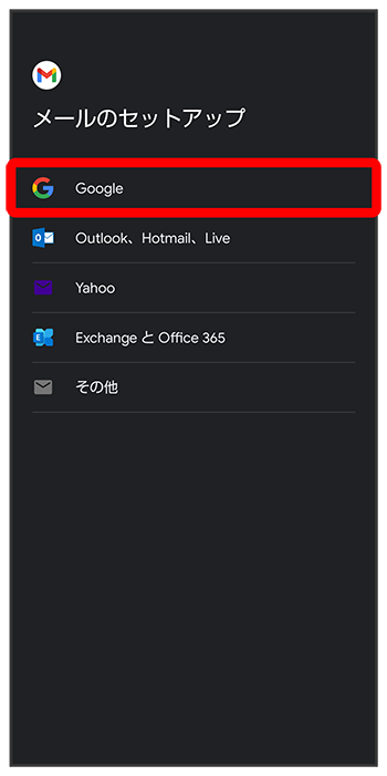 ここでは、Google アカウントを追加する方法を例に説明します。