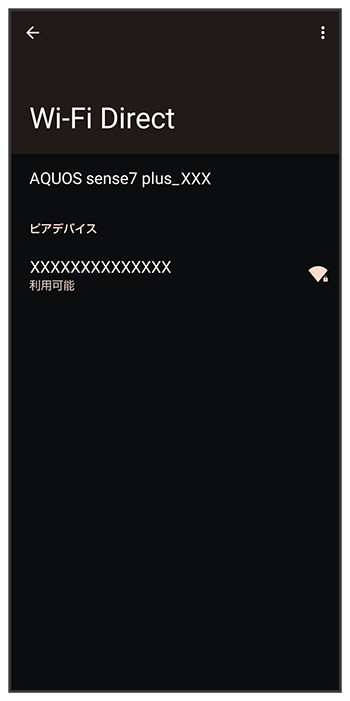 「ピアデバイス」欄に、近くにあるWi-Fi Direct規格対応機器が表示されます。