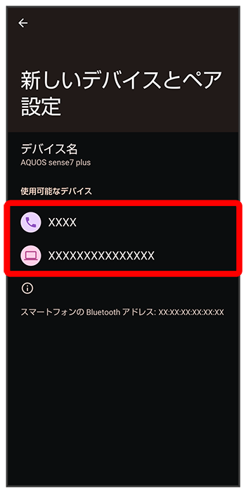 「使用可能なデバイス」欄に近くにあるBluetooth®機器が表示されます。