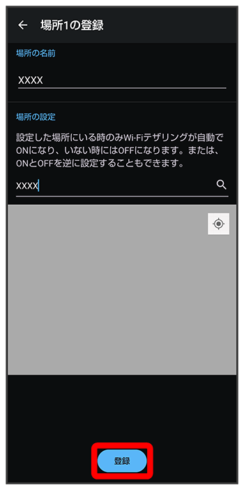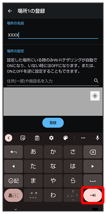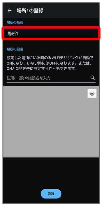 テザリングオート画面で場所の名前欄をタップ場所の名前を入力