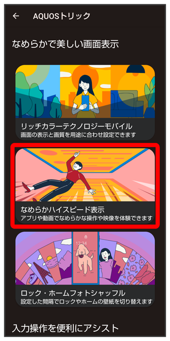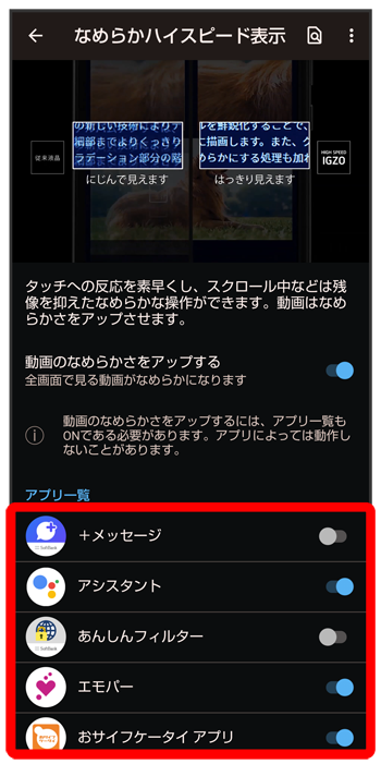 - アプリによっては効果が得られないことがあります。その場合は、設定を無効にしてください。また、電池残量や本体温度によっても、効果が得られない場合があります。