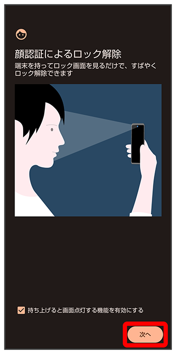 画面のガイドに顔を合わせる/画面ロックを解除するタイミングをタップ