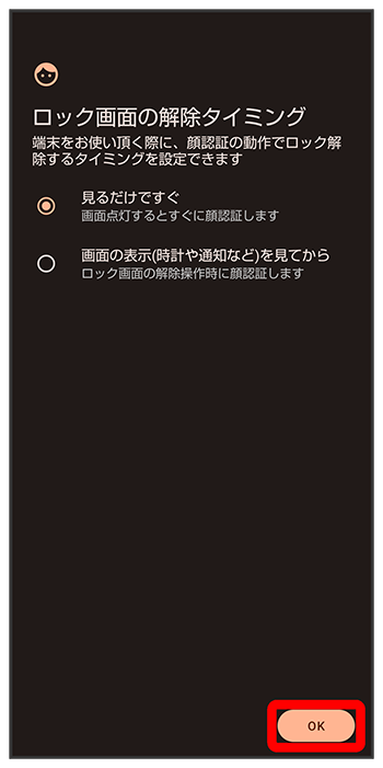 顔データの登録後に画面ロックを解除するタイミングを変更する
