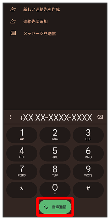 国番号のあとに相手の電話番号(先頭の「0」を除く)を入力