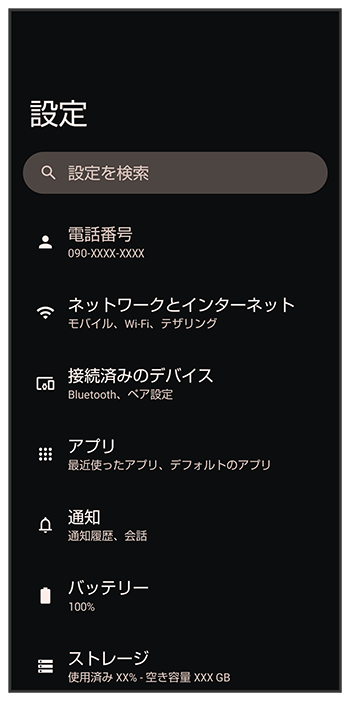 | 着信音とバイブレーション | 「音」が「着信音とバイブレーション」に変更され、項目が一部変更されます。 が追加され、動画などの音声に字幕を表示させるかどうかなどを設定できます。 が削除され、選択項目の一部がに移動されます。 が追加されます。 詳しくは、「ユーザー補助の設定について」を参照してください。 がとしてに移動されます。 が追加され、マナーモード(バイブ)に設定しているときに、どの画面でもステータスバーに そのほかの項目が一部変更されます。 |