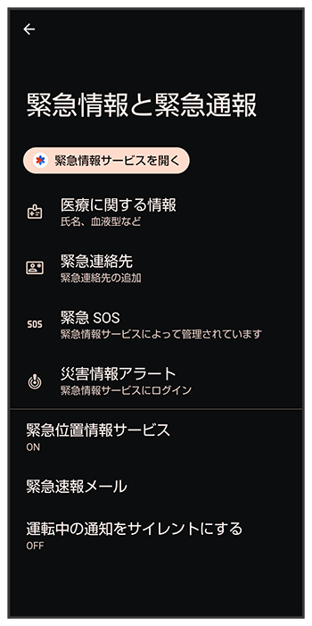 緊急情報と緊急通報の設定について