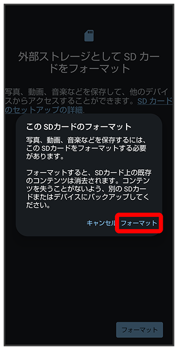 SDカード内のデータがすべて消去されます。