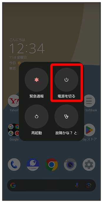 画面ロック解除用のパターン/ロックNo.(PIN)/パスワードを設定している場合や、顔認証機能や指紋認証機能を利用している場合、電源メニューにが表示されます。