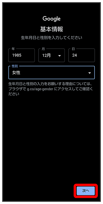 生年月日と性別を設定/入力