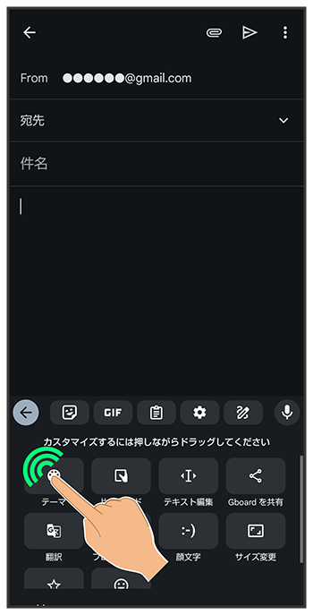 - ツールバーに表示されているアイコン(アイテム)をロングタッチしても、アイテム一覧画面が表示されます。