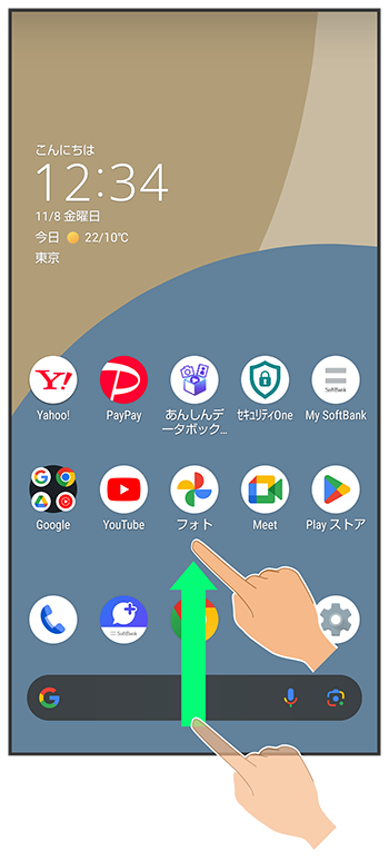 画面下部から上にドラッグ