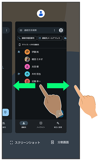 アプリの履歴を左右にドラッグして、次に操作したいアプリの履歴をタップ