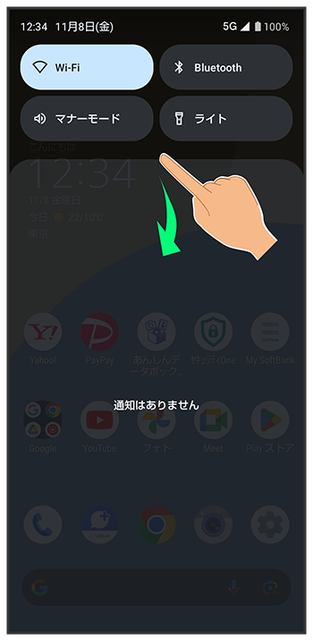 通知パネルを下にフリック