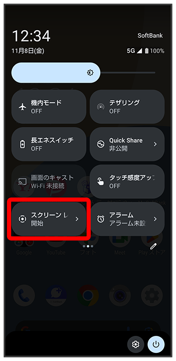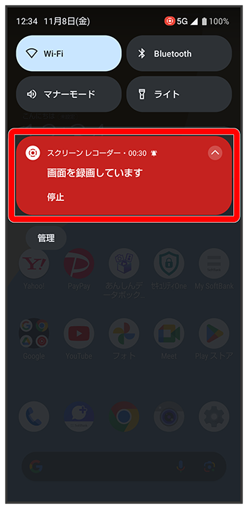 - クイック設定パネルでをタップしても録画を停止できます。