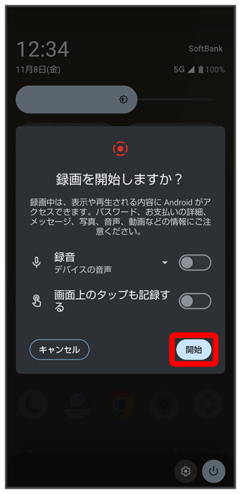 スクリーンレコード開始画面が表示されます。