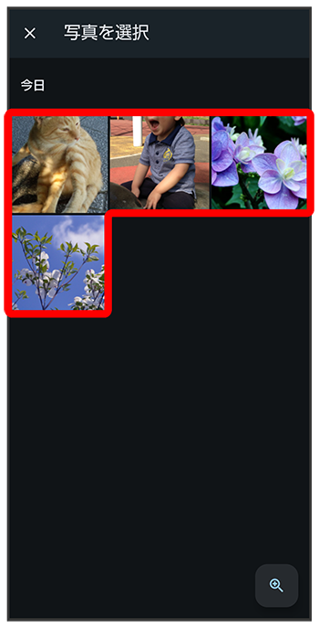 - をタップすると、選択した画像を確認できます。