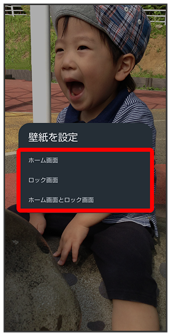 - をタップすると、ロック画面にのみ選択した壁紙を設定できます。