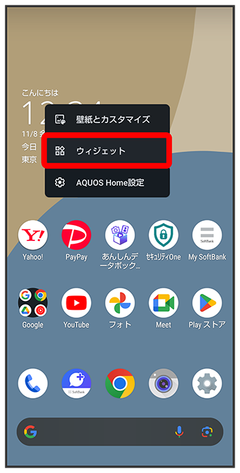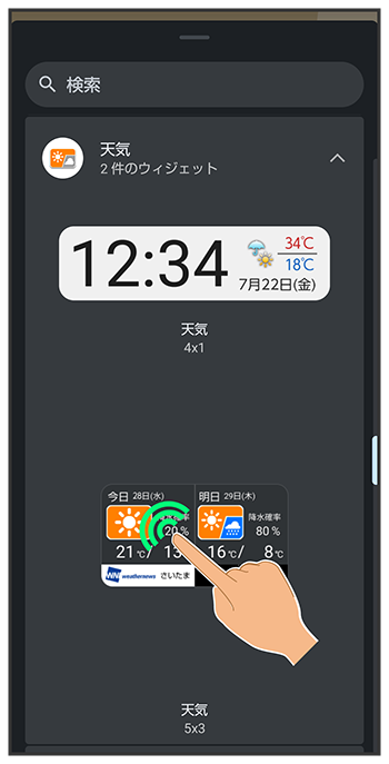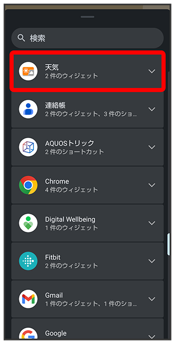 検索バーの下に、おすすめのウィジェットが表示されます。