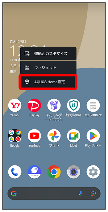 | Google アプリの表示 | ホーム画面の左側に、ニュースや天気などの情報を表示するかどうかを設定します。 |