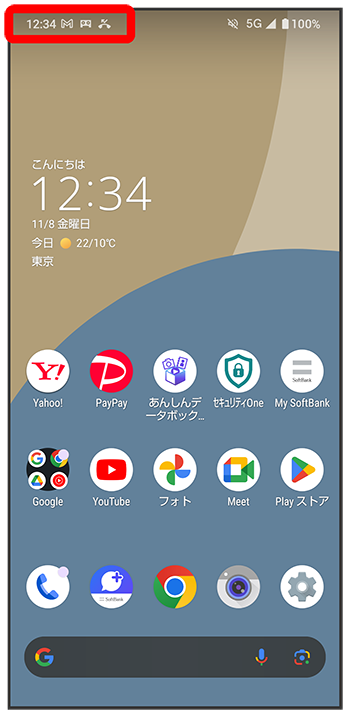 ステータスバーの左側に表示されるアイコンには、次のようなものがあります。